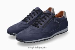 スポーティな外観を持つこの細かい穴の開いたシューズは、理想的なフィット感を保証します。統合されたソフトエアテクノロジーを備えた取り外し可能なインソールと衝撃吸収材を備えたアウトソールは、衝撃を最小限に抑え、足に弾みを与えて楽な歩行を保証します。エアリラックステクノロジーは足の解剖学的構造を尊重し、アーチの崩れを防ぎます。シューレースに加えて、サイドのファスナーで簡単に靴に足を入れることができます。裏地はレザーで作られており、足の衛生を確保するために繊維のタッチが施されています。メフィスト・レオン |メンズスニーカーダークブルーレザーヌバック